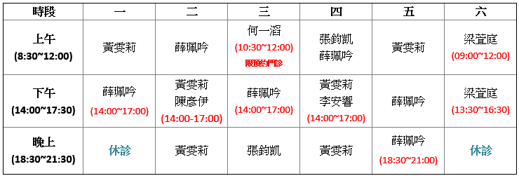 114/09/01起中壢院所(一)晚診休診,門診異動如下: